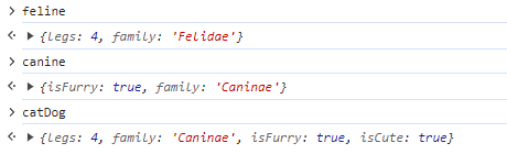 const catDog = {...feline, ...canine, isCute: true};