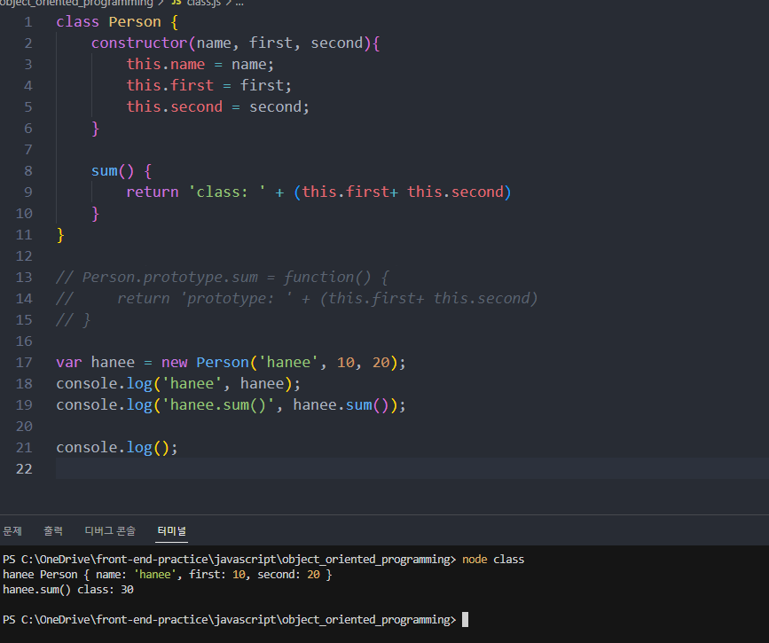 - 객체.prototype을 해주지 않아도 prototype에 method 입력이 되어 편하다.