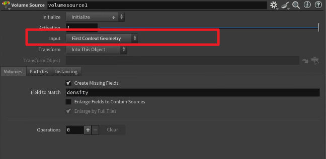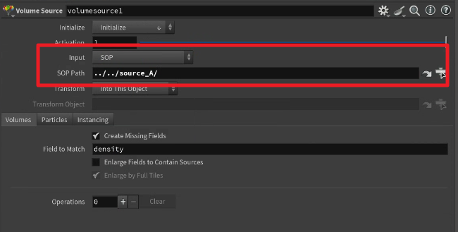 이때 source의 Initialize에서 Collision을 선택하고, SOP 에는 collision source 경로를 입력한다.(volume source로 입력한다.)