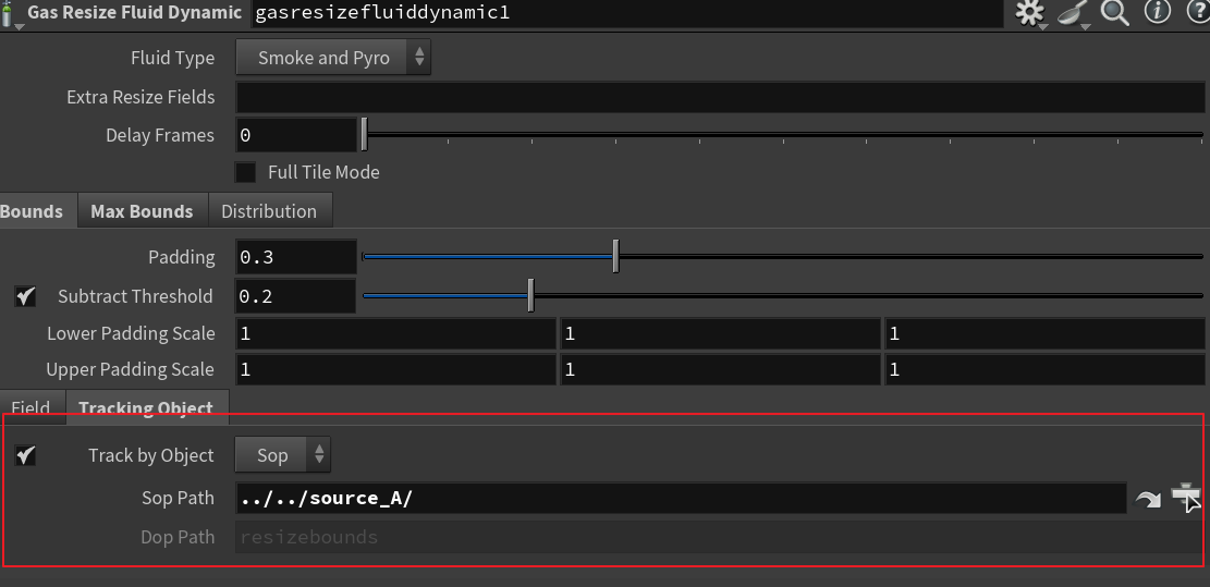 먼저 따라갈 volume의 경로를 Tracking Object 탭의 Sop Path에 입력해준 후 Max Bounds 탭의 Clamp to Maximum Size 체크를 해제해 주면 동적으로 변한다.