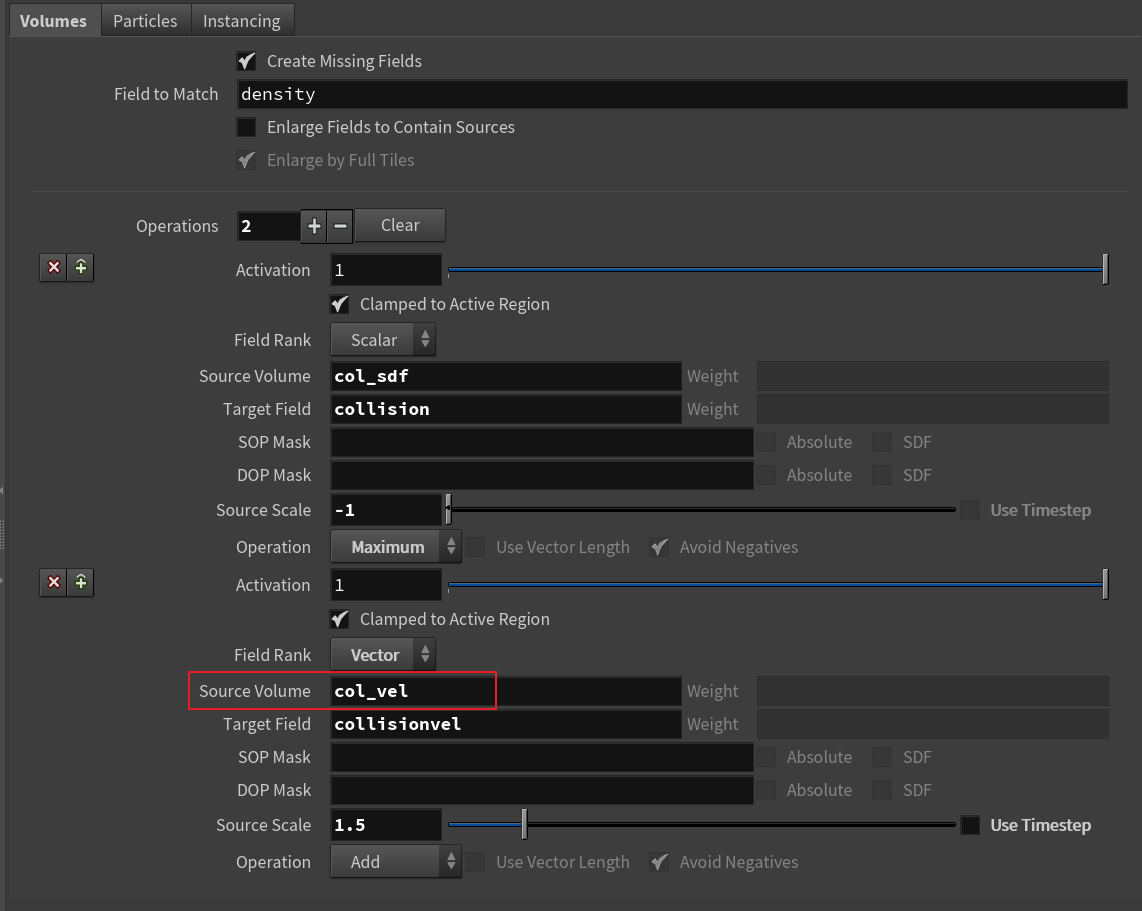 - collision vel을 위한 source로는 VDB from Particles의 Velocity VDB를 활용