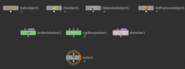 Rigid Body Simulation의 경우는 Volume simulation의 volume source나 Particle simulation의 pop source와 같이 소스를 주입해주는 노드가 따로 정의되어 있지 않다.